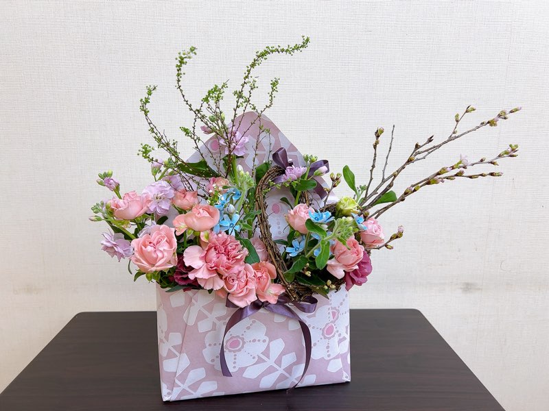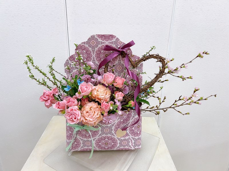 愛を伝えるラブレター、感謝を伝えるメッセージなど、いろんな思いをこのバレンタインアレンジに込めてみました。