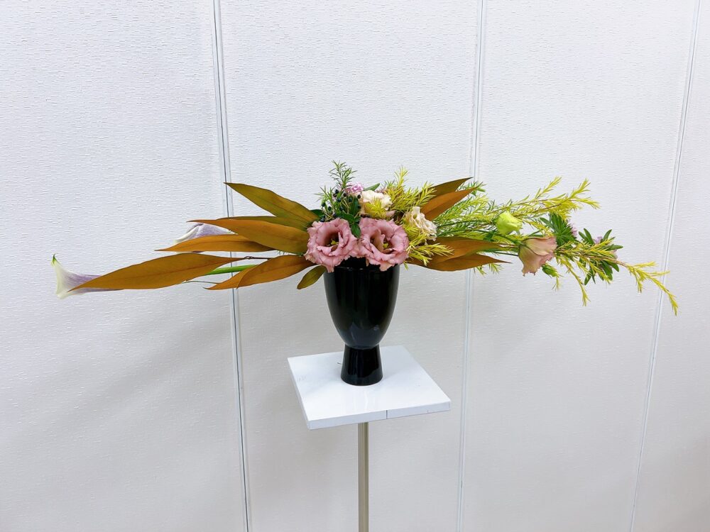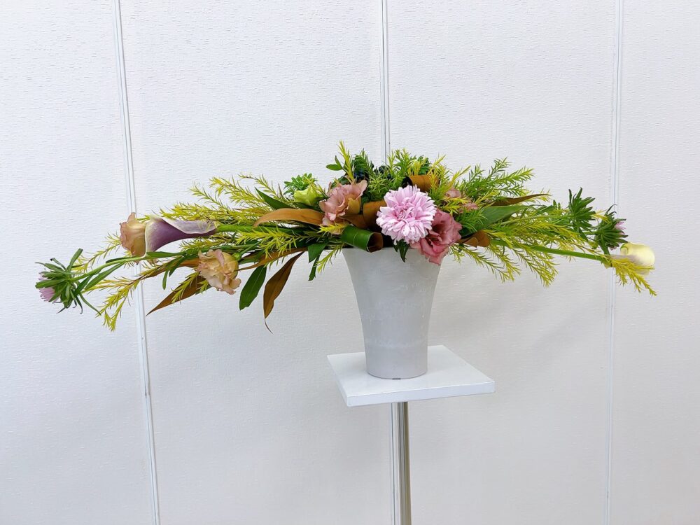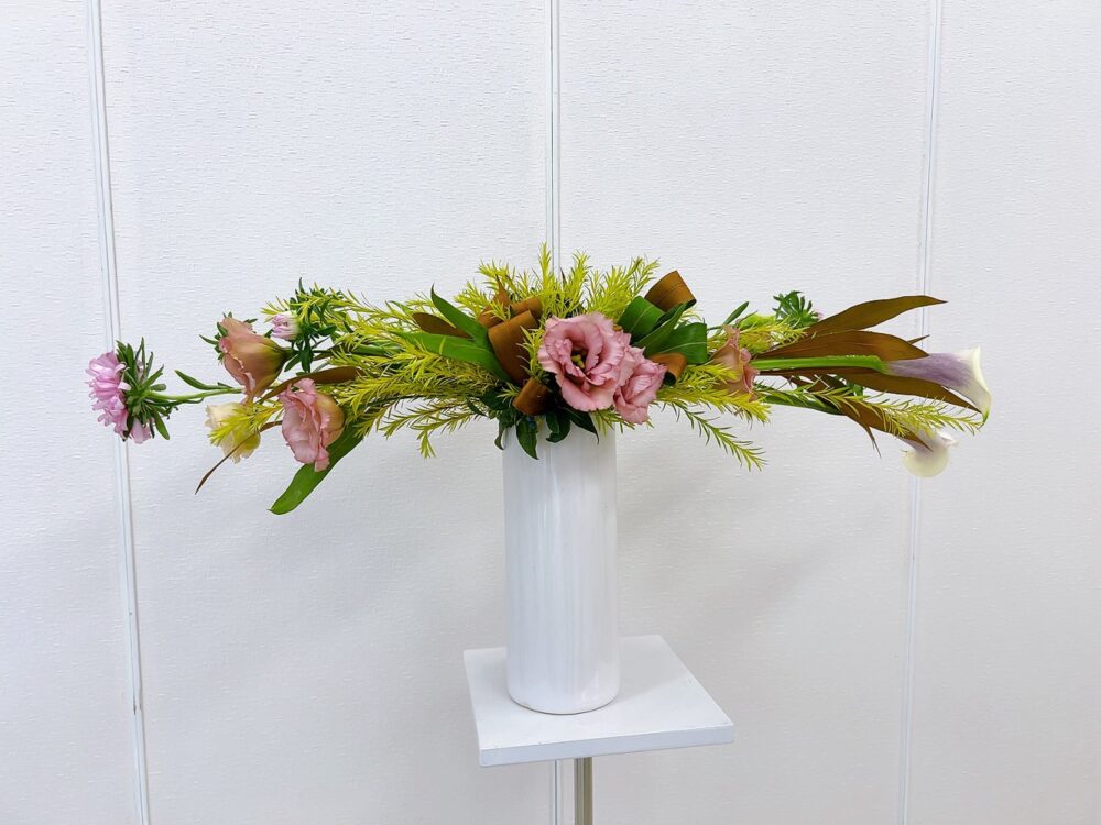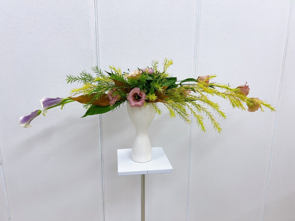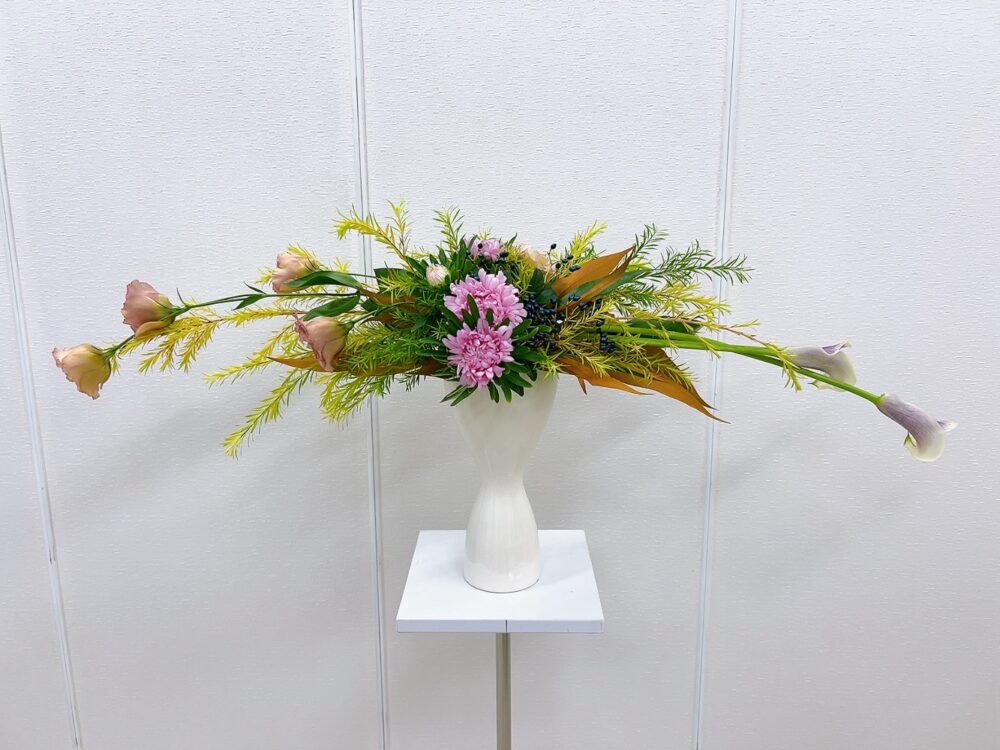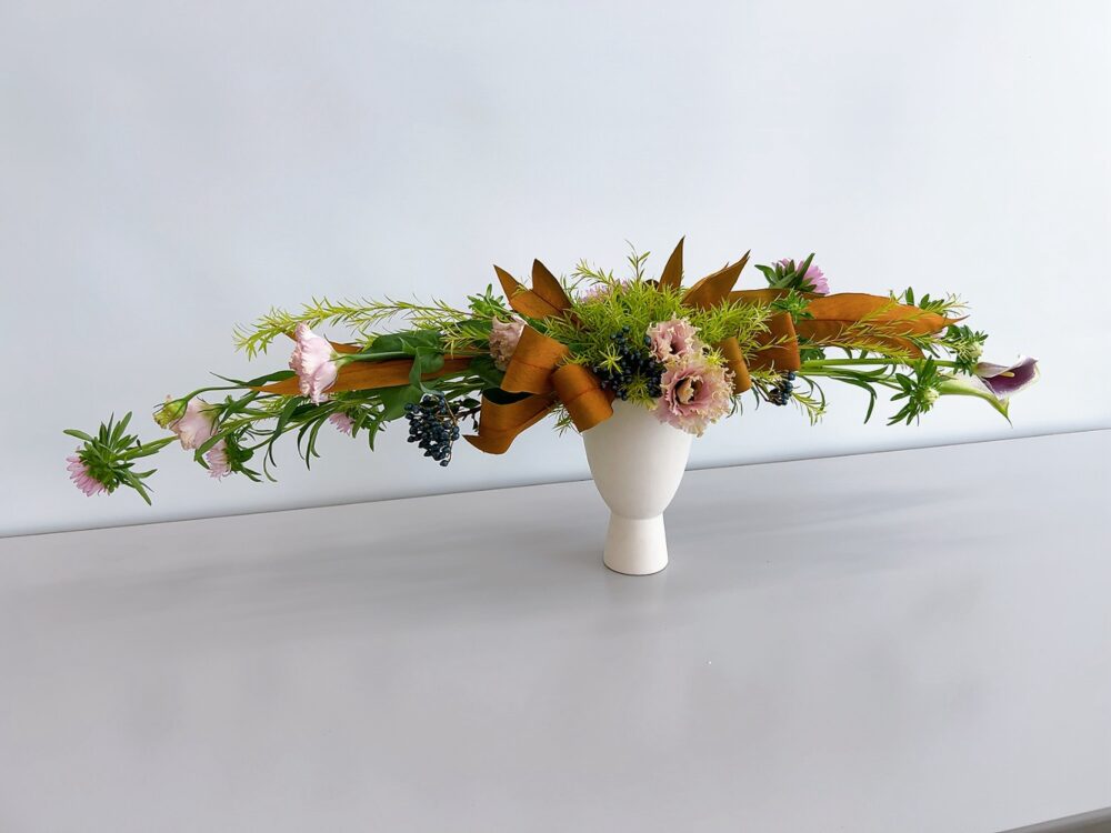 置いた面に対し、並行にすっと左右に広がる美しいスタイルのホリゾンタルライン。花やステムの美しさや、葉の裏表の面白さなどもより表現することができます。