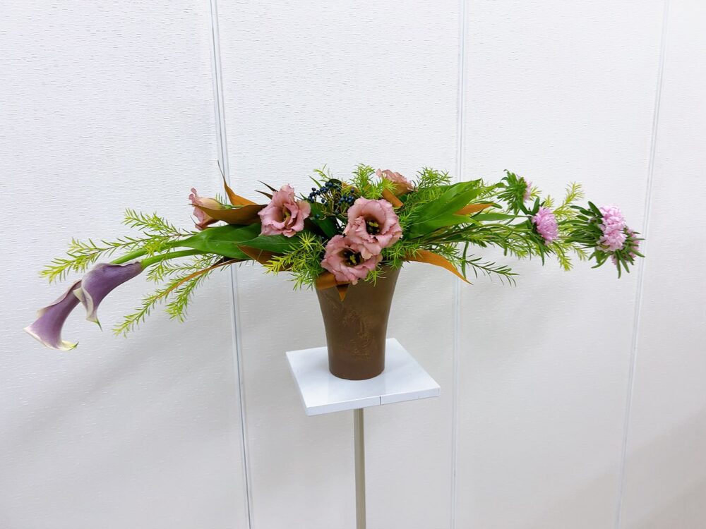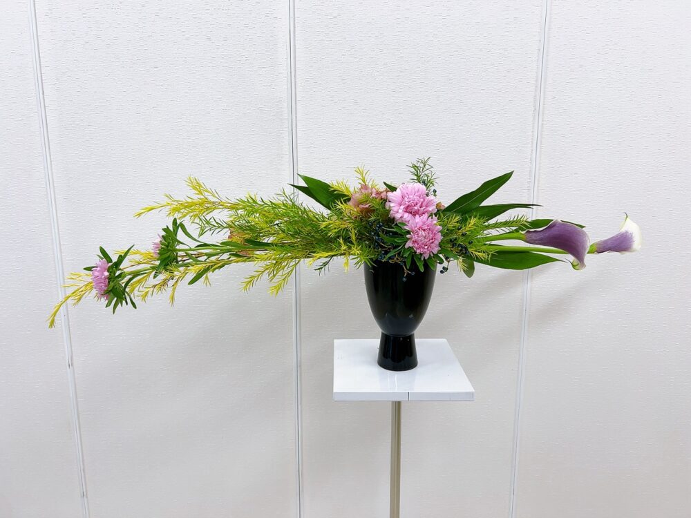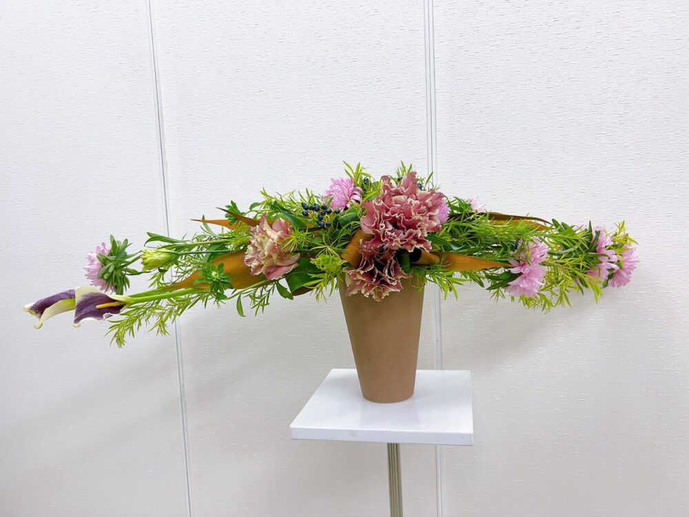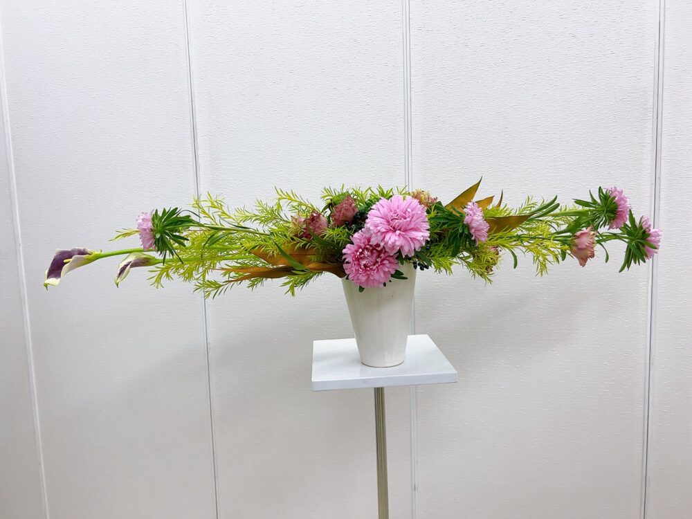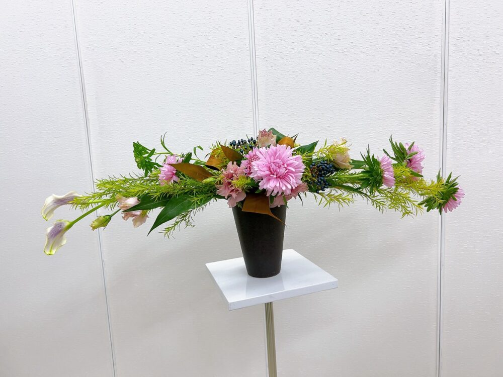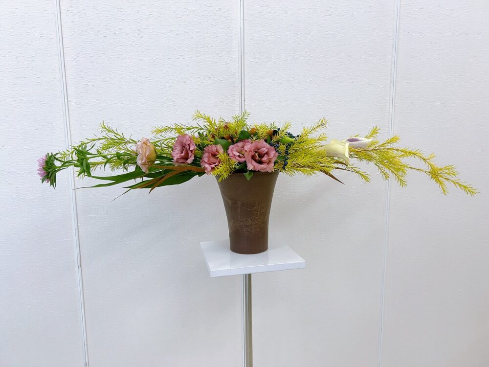 置いた面に対し、並行にすっと左右に広がる美しいスタイルのホリゾンタルライン。花やステムの美しさや、葉の裏表の面白さなどもより表現することができます。
