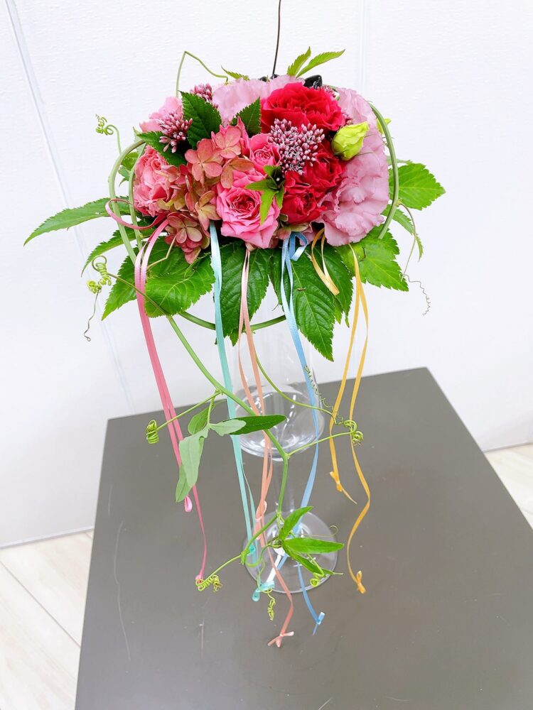 コース案内 研究科ブーケ<ホールディングのシャワーボケー> マミフラワー講師資格取得コース UPDATE : 2023.10.16 <花材> トルコキキョウ・ミナヅキ・スプレーバラ・木イチゴ・バラ・ハラン・フジバカマ・コニカルブラック