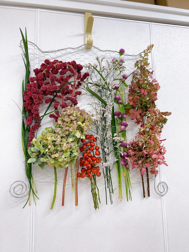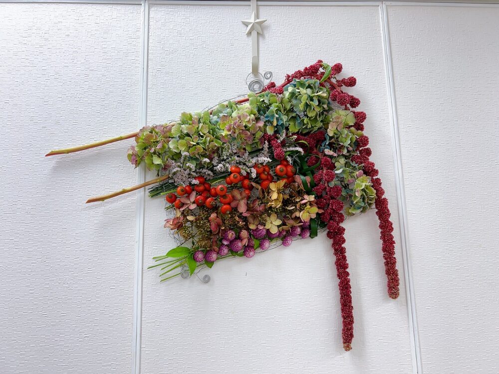 コース案内 研究科1級1年9月<ドライのデザインⅤ(編みこむ)> マミフラワー講師資格取得コース UPDATE : 2025.10.01 <花材> ミナヅキ・秋アジサイ・千日紅・ローズヒップ・アマランサス・ハイブリッドチース・ミスカンサス