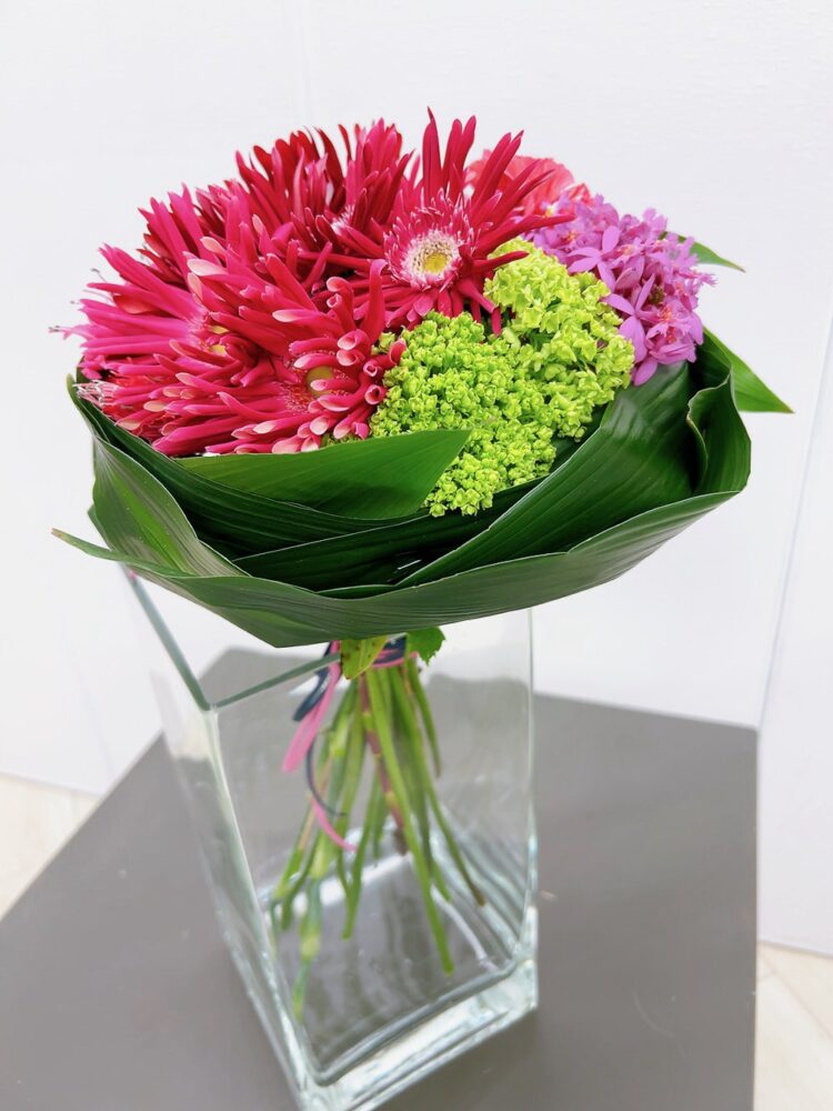 コース案内 4月のブーケ<ハランのリースネストボケー> マミフラワー講師資格取得コース UPDATE : 2024.04.30 <花材> ガーベラ・ハラン・ダイアモンドリリー・エビネラン・カーネーション・スノーボール