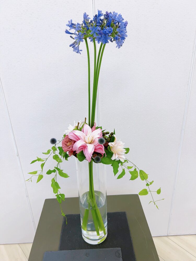 研究科2級3年4月<花木のデザインⅡ・直線で仕切った水平な面> マミフラワー講師資格取得コース UPDATE : 2025.04.25 <花材> ムシカリ・スナップ・ラクスパー・マリンブルー・グラジオラス・ピンク・ブルーレースフラワー・スターチス 詳細を見る