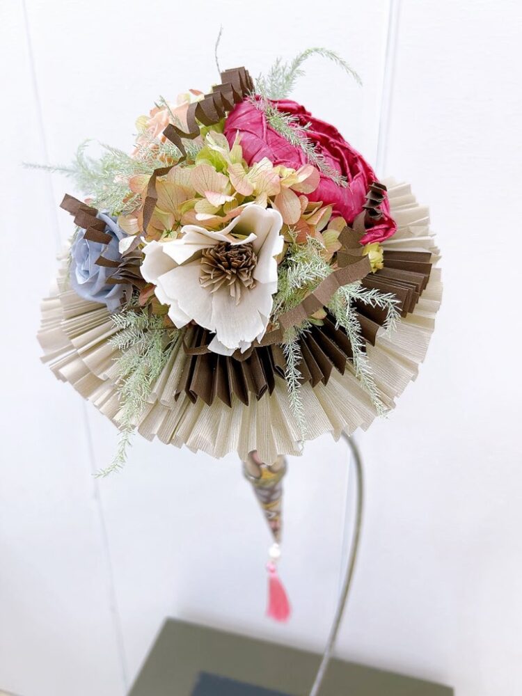 研究科ブーケ<スターチスのタマゴ・ネストボケー> マミフラワー講師資格取得コース UPDATE : 2025.04.25 <花材> スターチス・バラ・ゴールデンスティック・スプレーマム・ドラセナ・ドラゴンウンリュウヤナギ 詳細を見る